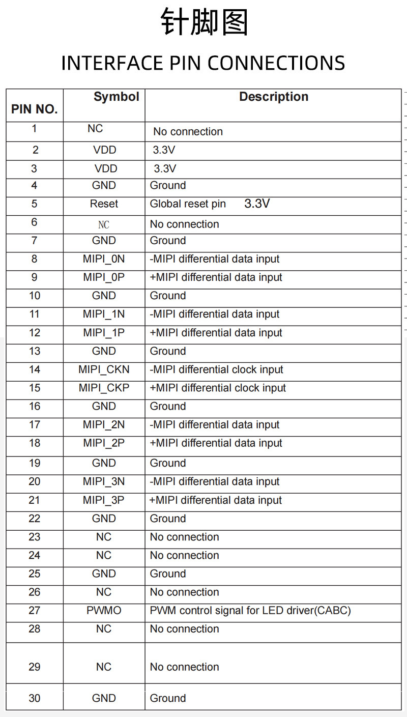 - Pin No(针脚数量):30