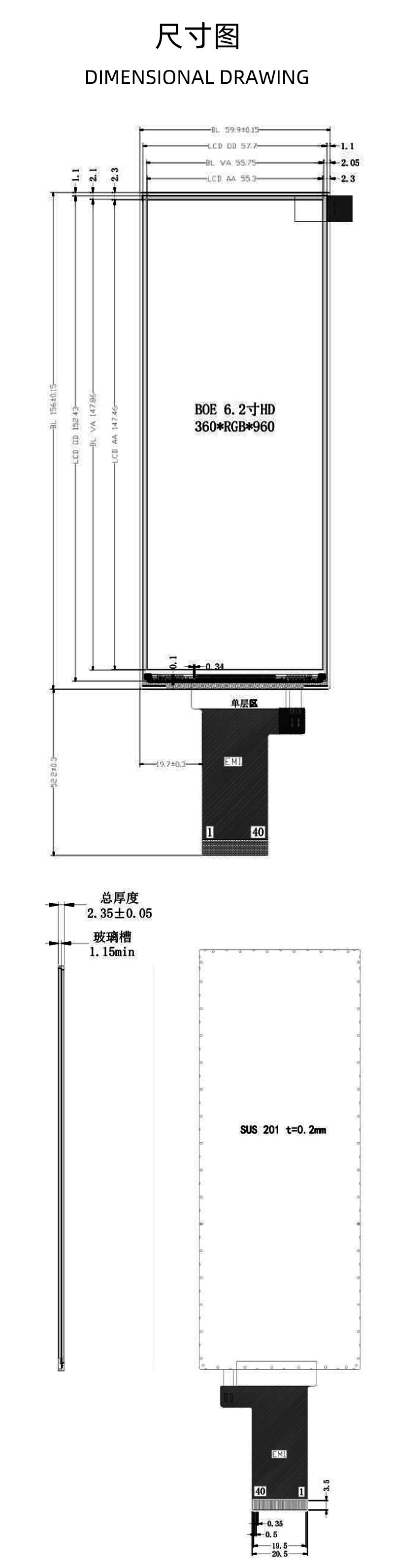 6.2寸360x960-TFT显示屏