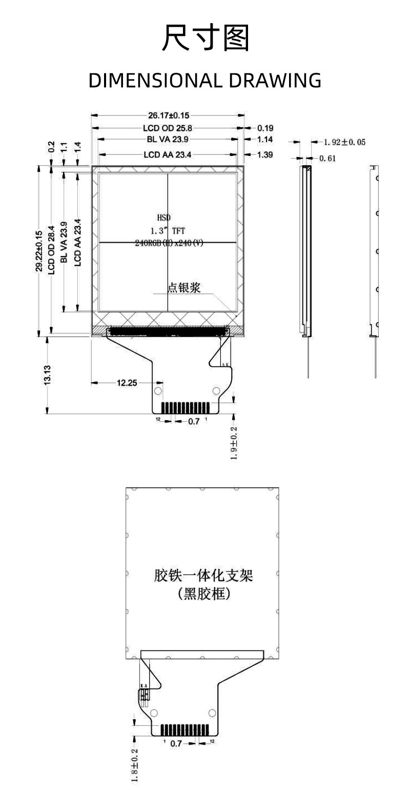 1.3寸TFT液晶显示屏240x240分辨率