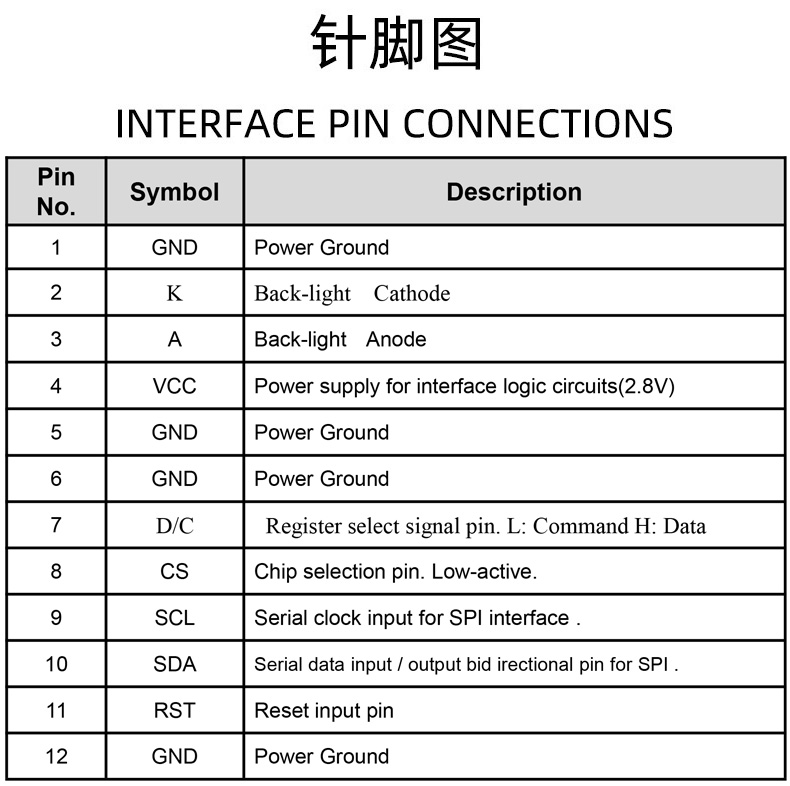 - Interface(接口):SPI-4W