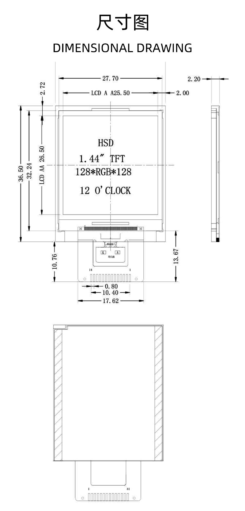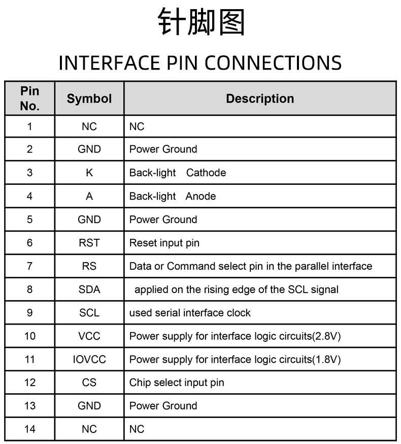 1.44寸TFT液晶显示屏128x128分辨率