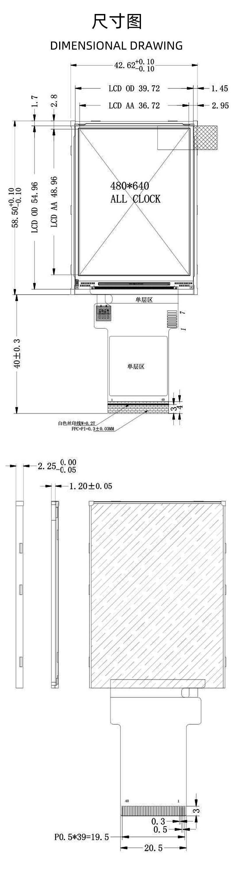 - Outline Dimension(外框尺寸):58.5x42.62