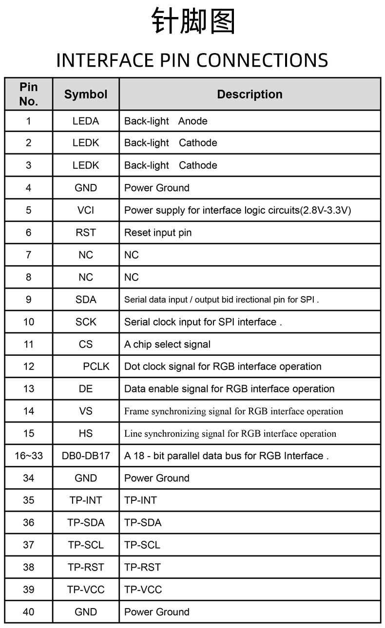 - Pin No(针脚数量):40