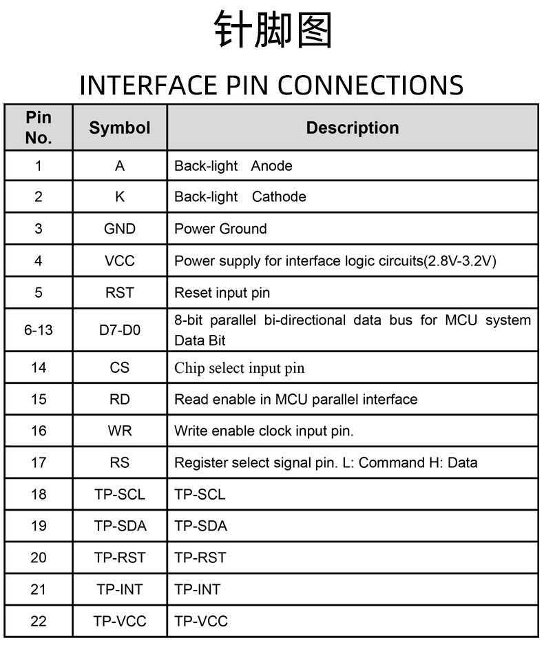 - Pin No(针脚数量):22